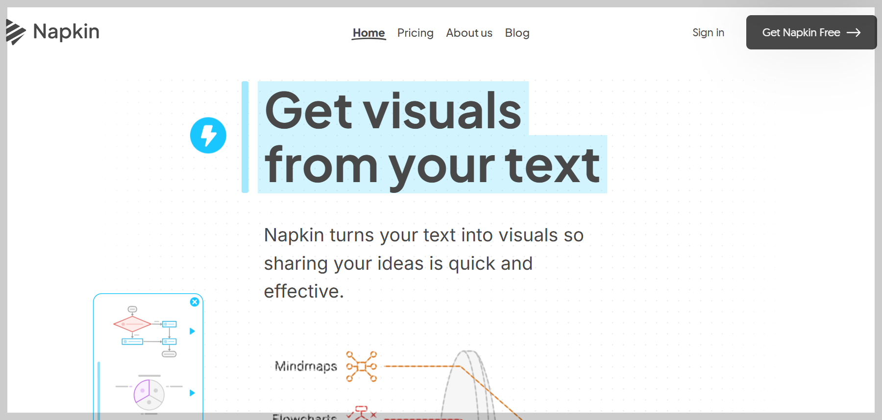 Just type, copy-paste or generate your text and Napkin will instantly transform it into insightful visuals. Make your communication more effective with Napkin.