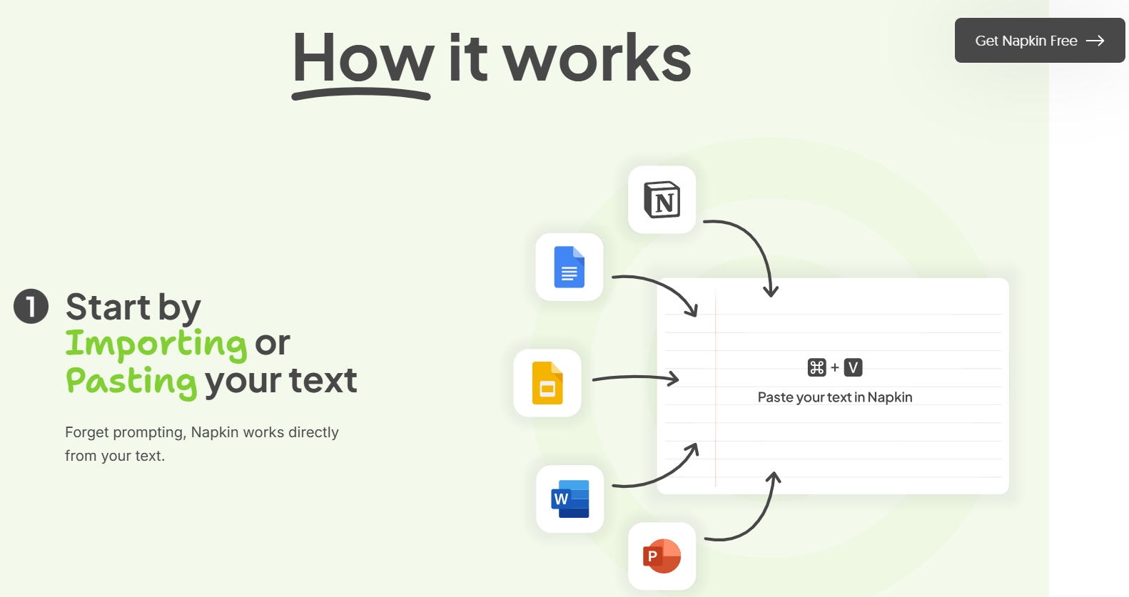 냅킨 AI에 접속한 후 Get Napkin free 를 클릭하여 회원가입 한 후 사용하세요